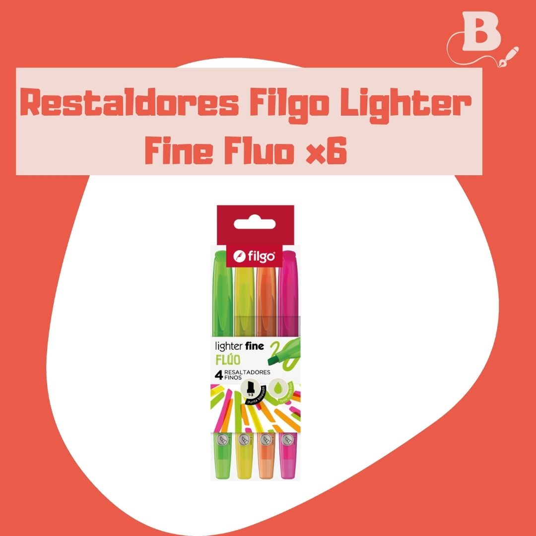 Set de resaltadores Filgo Lighter Fine Fluo con punta biselada de 1 a 3 mm, ideales para subrayar con precisión sin correr la tinta. Sus colores flúo brillantes ofrecen un resaltado uniforme sobre papel, fotocopias o fax. Perfectos para estudio, oficina o uso diario.