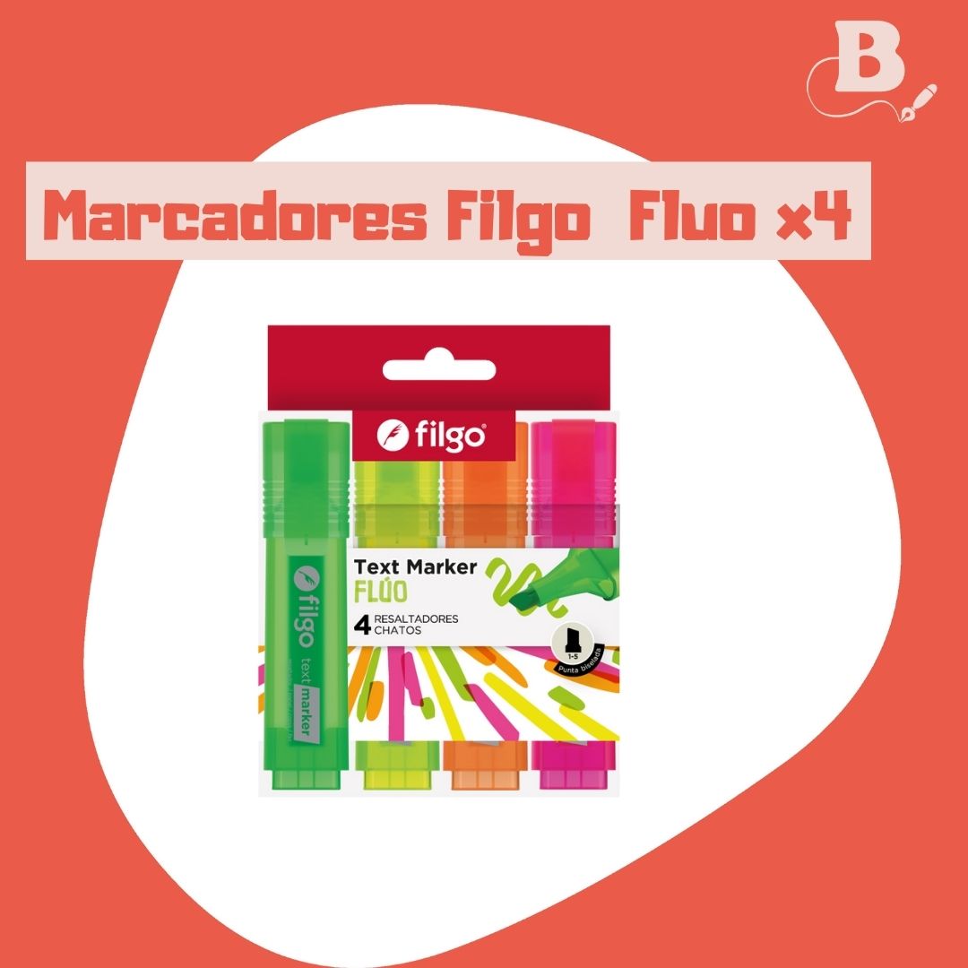 Pack de marcadores Filgo Text Marker con punta biselada para lograr trazos finos o anchos según la necesidad. Ideales para resaltar textos sin correr la tinta, ofreciendo colores flúo intensos y duraderos. Aptos para usar sobre papel común, fotocopias o fax.